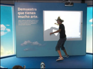 Una pantalla táctil y una pizarra interactiva fueron los dispositivos escogidos para el stand, que sorprendió por su originalidad ya que el público asistente pudo hacer uso de esta tecnología interactuando con varios juegos y entretenimientos.