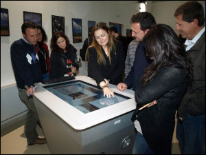En esta ocasión Visualpanel y Art Studio fueron las empresas encargadas de aportar los  dispositivos táctiles y los contenidos interactivos mediante un atril virtual, que permitía pasar las páginas digitalizadas de un ejemplar único y protegido en la vitrina; una vitrina que respondía a los gestos del visitante para ir mostrando información de los objetos allí expuestos y por último una mesa táctil cargada de información turística.