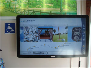 En esta ocasión se ha instalado una pantalla táctil de 46” adaptada para minusválidos en el interior de la oficina y una pantalla interactiva en el escaparate exterior del edificio, y están operativas las 24 horas del día durante todos los días del año ofreciendo información con más de 5000 puntos de interés, a través de una serie de contenidos interactivos, desarrollados en su día por el equipo de Art Studio, de cada uno de los municipios que integran la Costa del Sol.