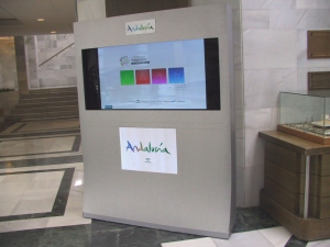 Para esta ocasión ART STUDIO MULTIMEDIA desplazo dos pantallas interactivas Ubiq Window, una de 2 metros con proyector y otra de 150 centimetros con monitor de plasma, dentro de un mueble de diseño. Igualmente realizó los contenidos multimedia interactivos que daban información detallada a los participantes en las jornadas.