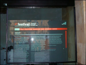 Un gran escaparate sirve de soporte para este producto interactivo dónde se proyectará la información del festival permitiendo visualizar la adaptación de la web y los contenidos multimedia tales como videos, fotografías, etc. que Art Studio ha realizado para dicho evento cultural.