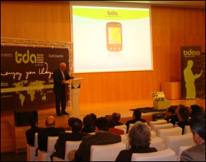 Don Feliciano Alonso se dirigió al público asistente exponiendo y elogiando las numerosas y ventajosas características del navegador turístico desarrollado por TDA.