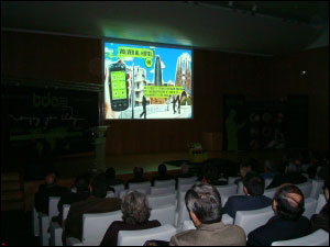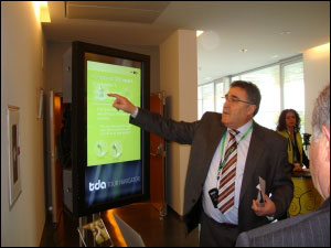 Una pantalla táctil con PC incluido sirvió como soporte para la proyección de las múltiples funcionalidades de la PDA. Mediante esta tecnología táctil los asistentes al acto pudieron comprobar el potencial del navegador turístico interactuando con los contenidos informativos sobre el mismo.