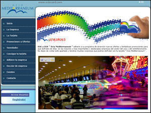 La Web nos presenta la tarjeta Ocio Mediterraneum, que tiene como finalidad brindar a los titulares de la misma y a sus acompañantes ofertas con significantes descuentos económicos en varias de las empresas pertenecientes al sector del Ocio y la diversión.